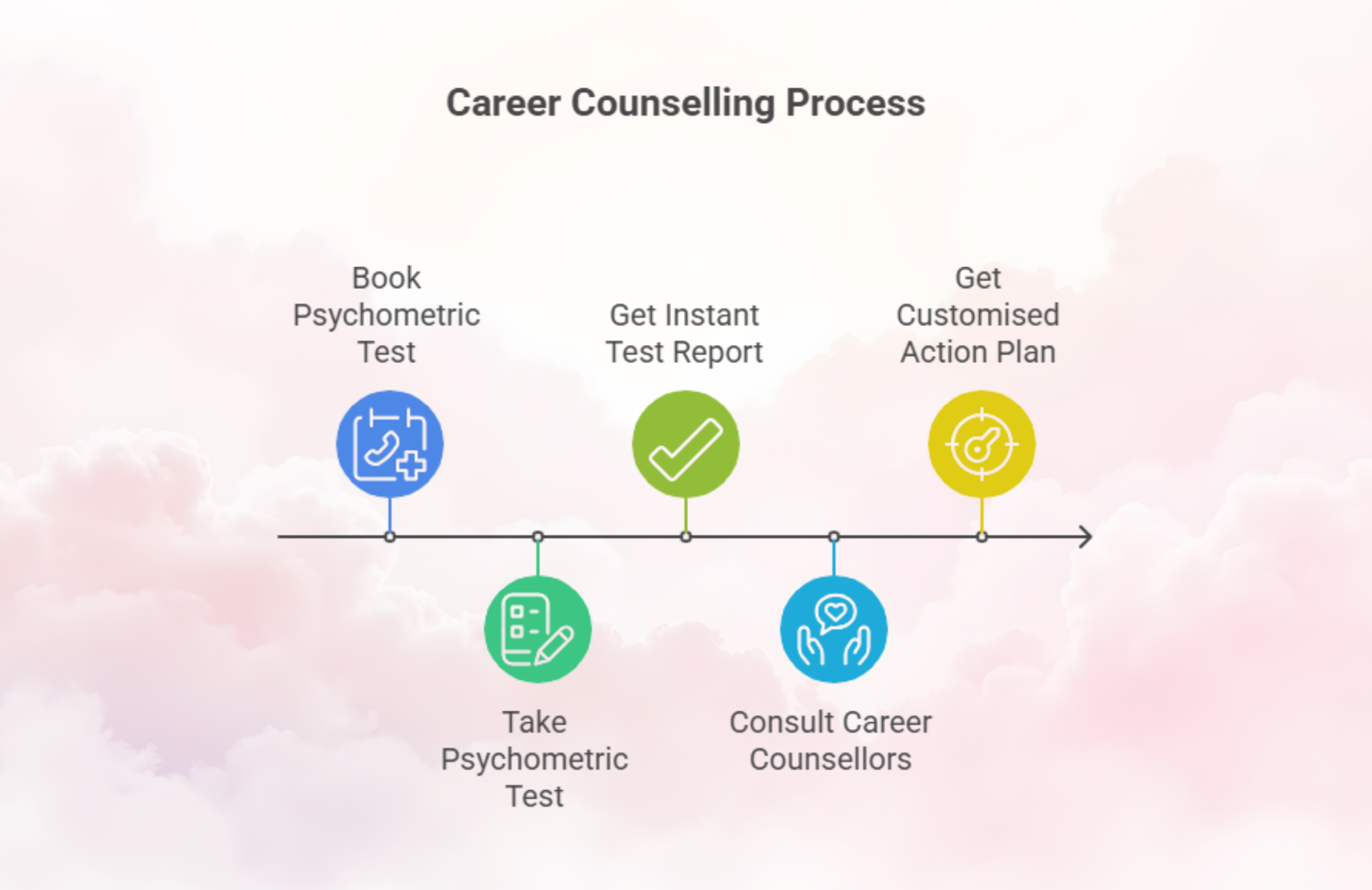 Now that you have got an understanding of what is a psychometric test, how does it help, and why it is crucial for you, here is what the ultimate process looks like. A psychometric test is the best way for you to understand yourself and career counselling makes it easier for you to accomplish your goals.