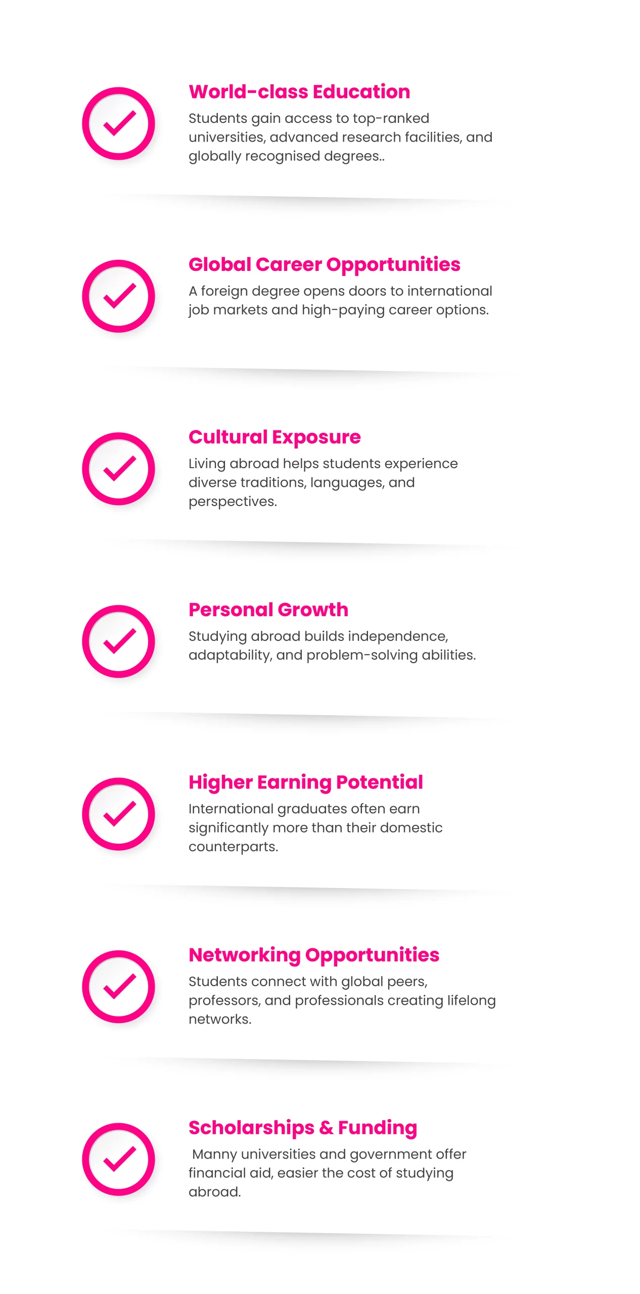 5. Boosting Employability: At last, the counsellors help you with internships, networking opportunities and career-building strategies while you study abroad. The counsellors help you connect with industry leaders and alumni, giving you the valuable exposure to high-paying career paths without struggling much on your own.