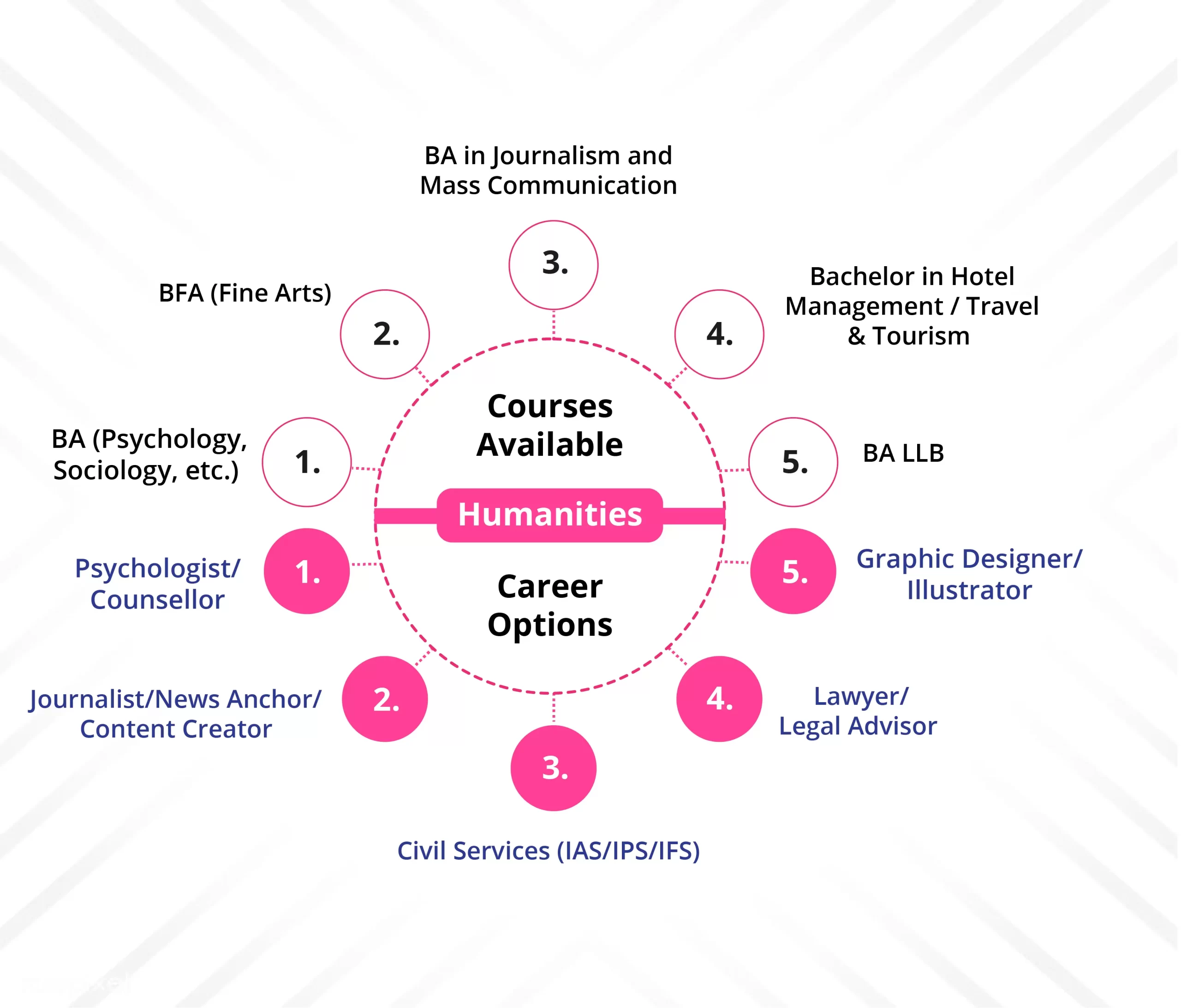 Humanities is an integrated stream that fosters creativity, critical thinking, and knowledge of human society and behavior. It is ideal for students pursuing the arts, media, law, psychology, and social sciences.