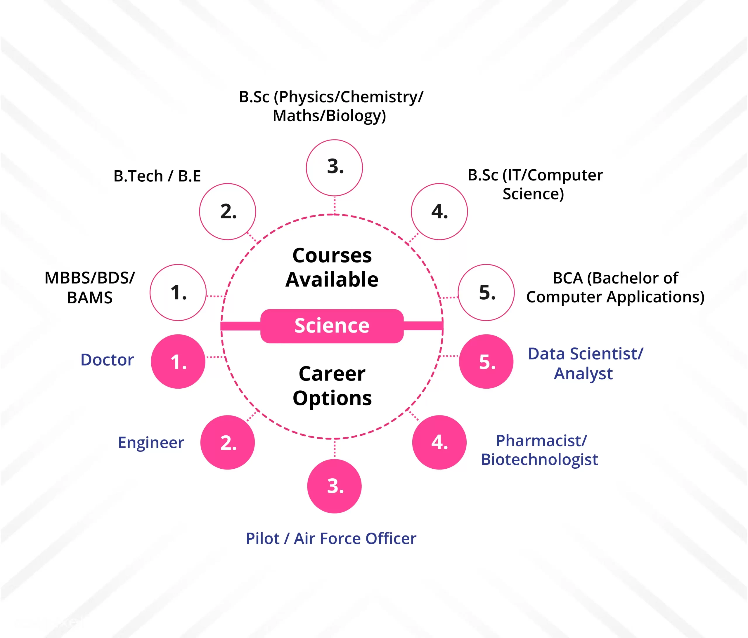 The Science stream provides access to a plethora of technical as well as medical professions. It lays a solid foundation in studies such as Physics, Chemistry, Biology, and Mathematics, and is best suited for analytical, inquisitive, and innovative or healthcare-oriented individuals.