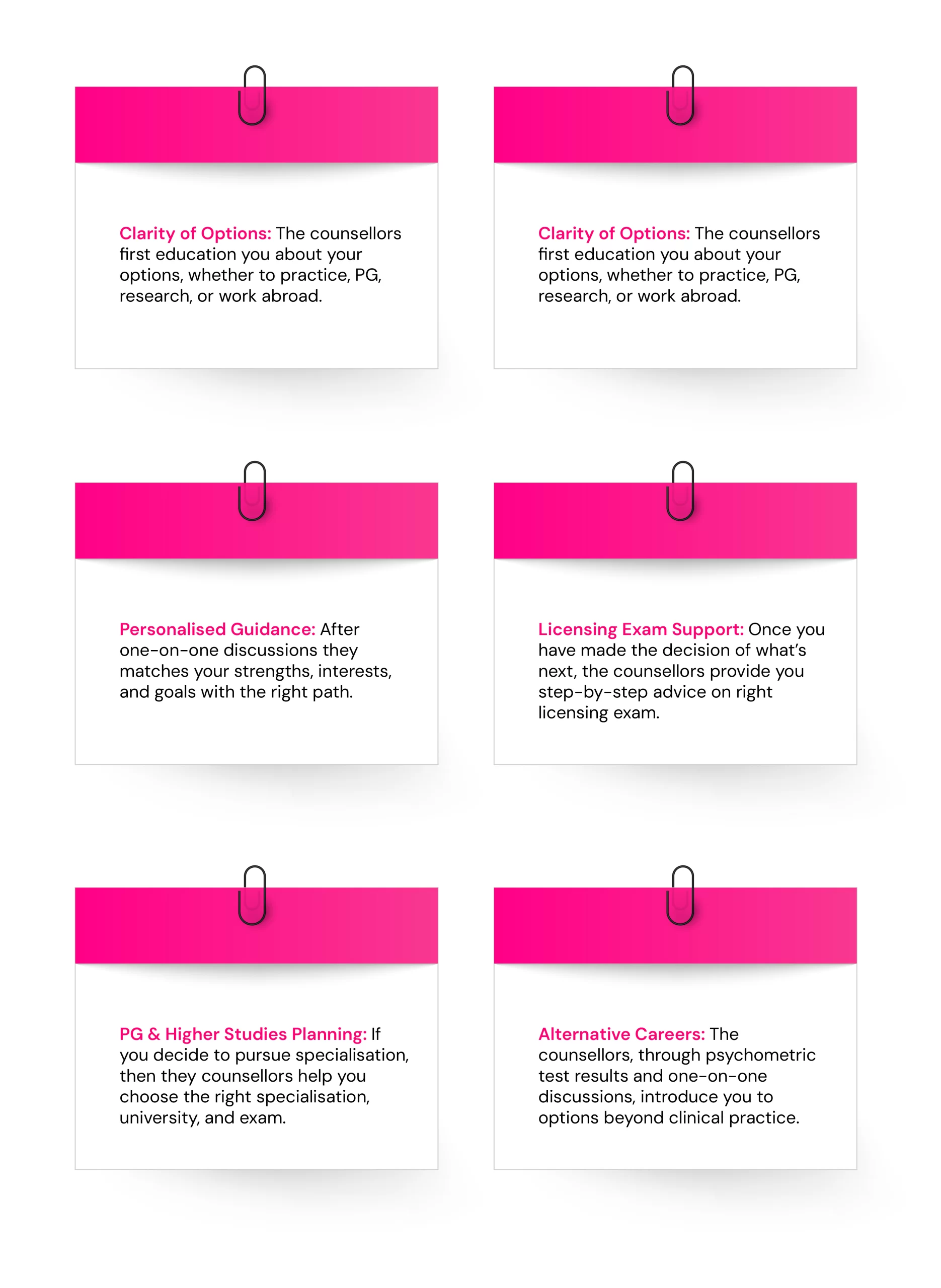 To know what fits you the best, you need clarity. This is the reason why MBBS graduates prefer to take career counselling before making a life altering decision.