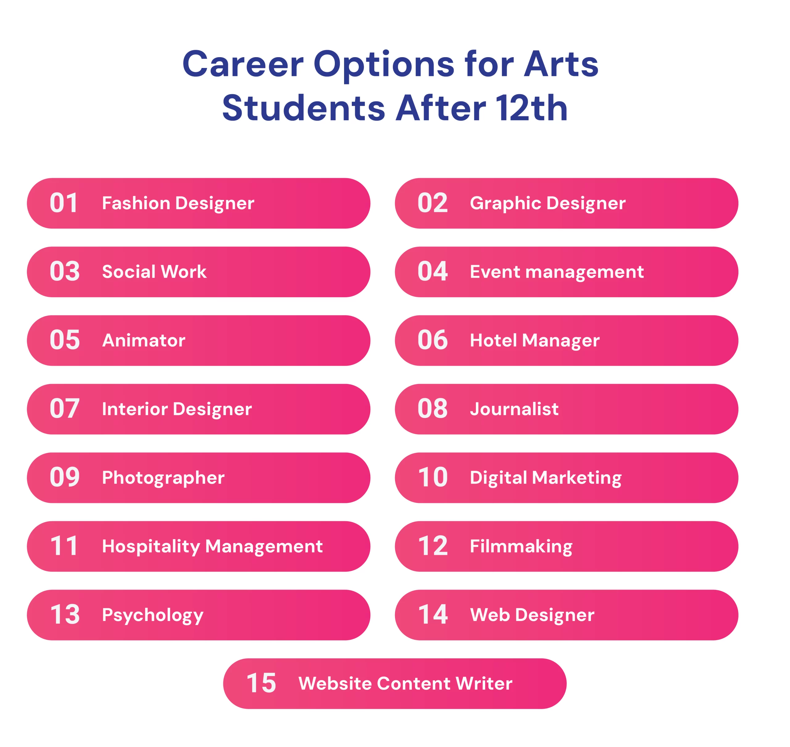 Psychology, Law, Journalism, Design, and Economics are among the best careers after 12th Arts. These fields offer strong career growth, global opportunities, and align with diverse skills like creativity, communication, and critical thinking.