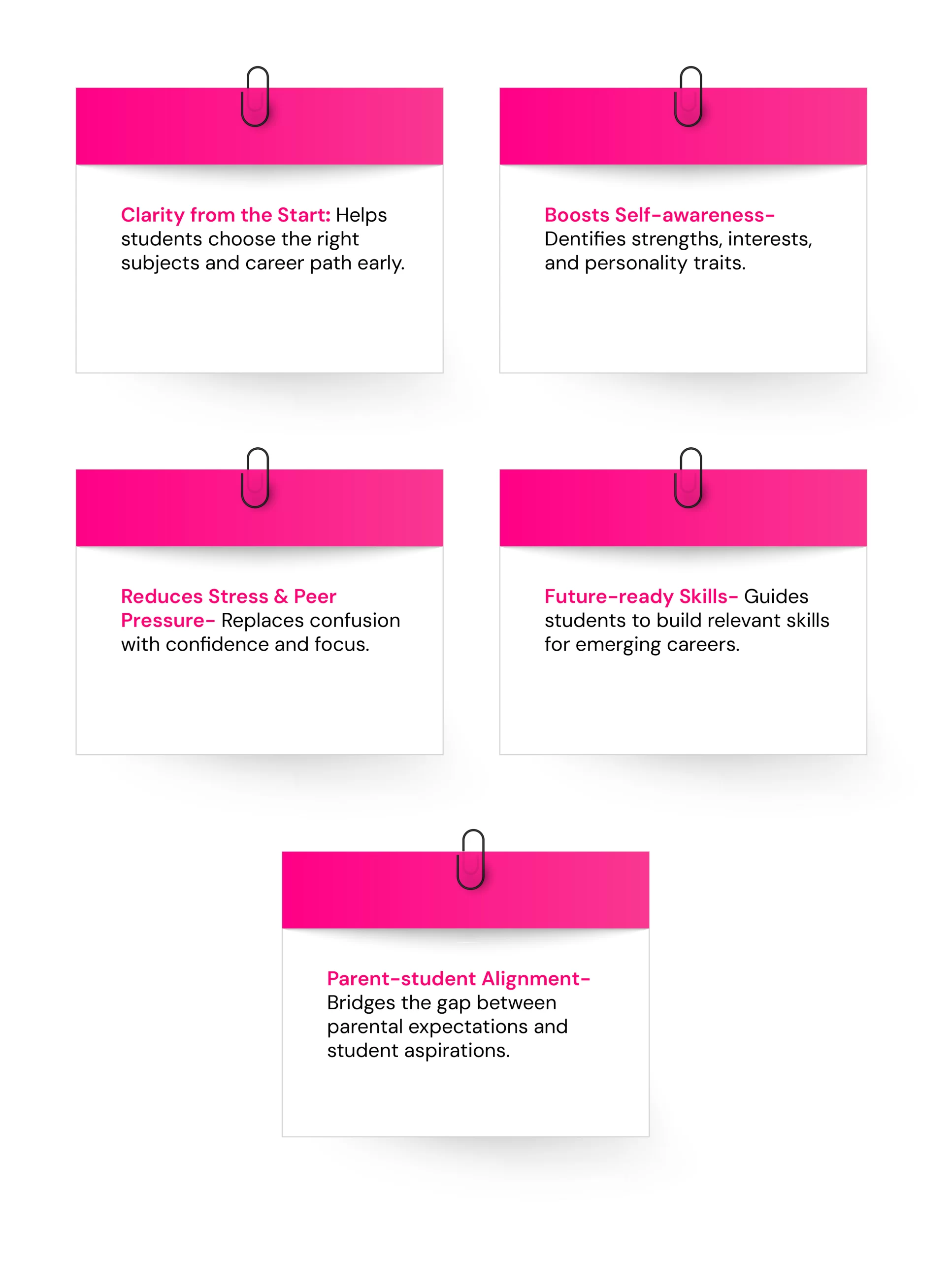 Career counselling provides self-awareness, helps choose suitable academic streams, and introduces emerging career options. It reduces stress, improves decision-making, bridges the parent-student gap, and ensures students develop the right skills for future opportunities, leading to clrity and long-term career satisfaction.