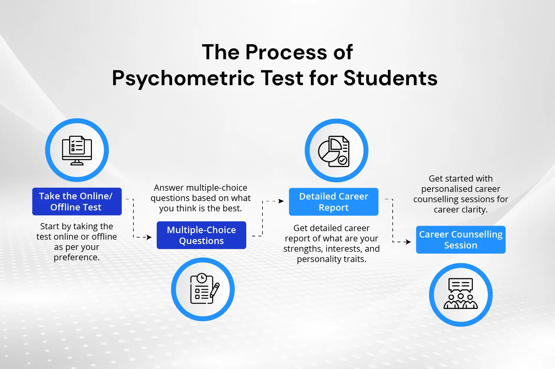 Now you must be wondering, if you take the psychometric test, what will be the next steps in the journey. To your ease, here’s an image explaining it all for you.