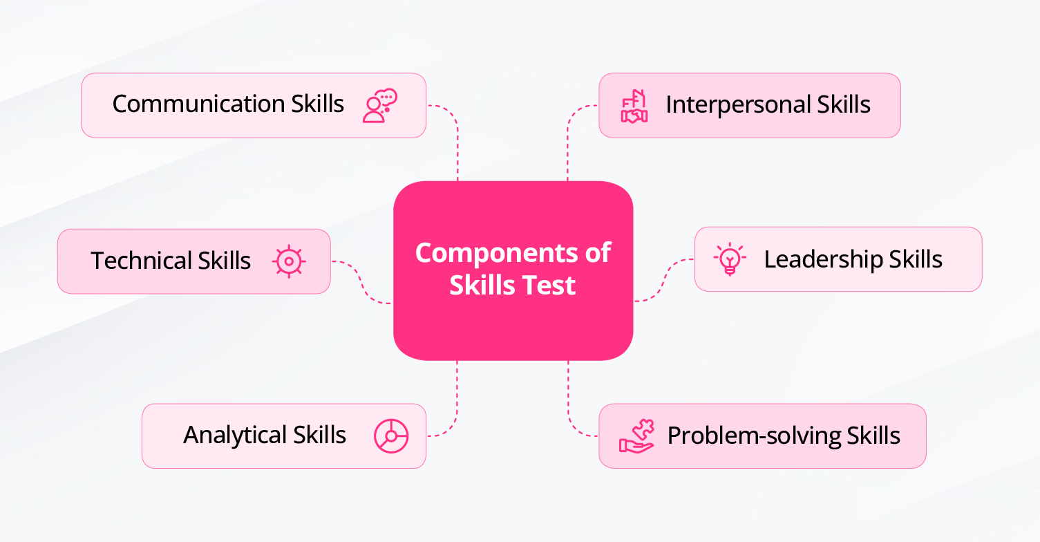 This is what a skills test is. It is a practical test that analyses your skills based on your responses to technical questions matched to a particular profile. This is more of an execution assessment than potential or preference. The skills test is more domain specific, helping each individual know what skills they need to enhance for a particular job role. By taking the skills test, individuals get to know real time improvements as it is a concrete proof of where you truly stand. Here are the components of a skills test.