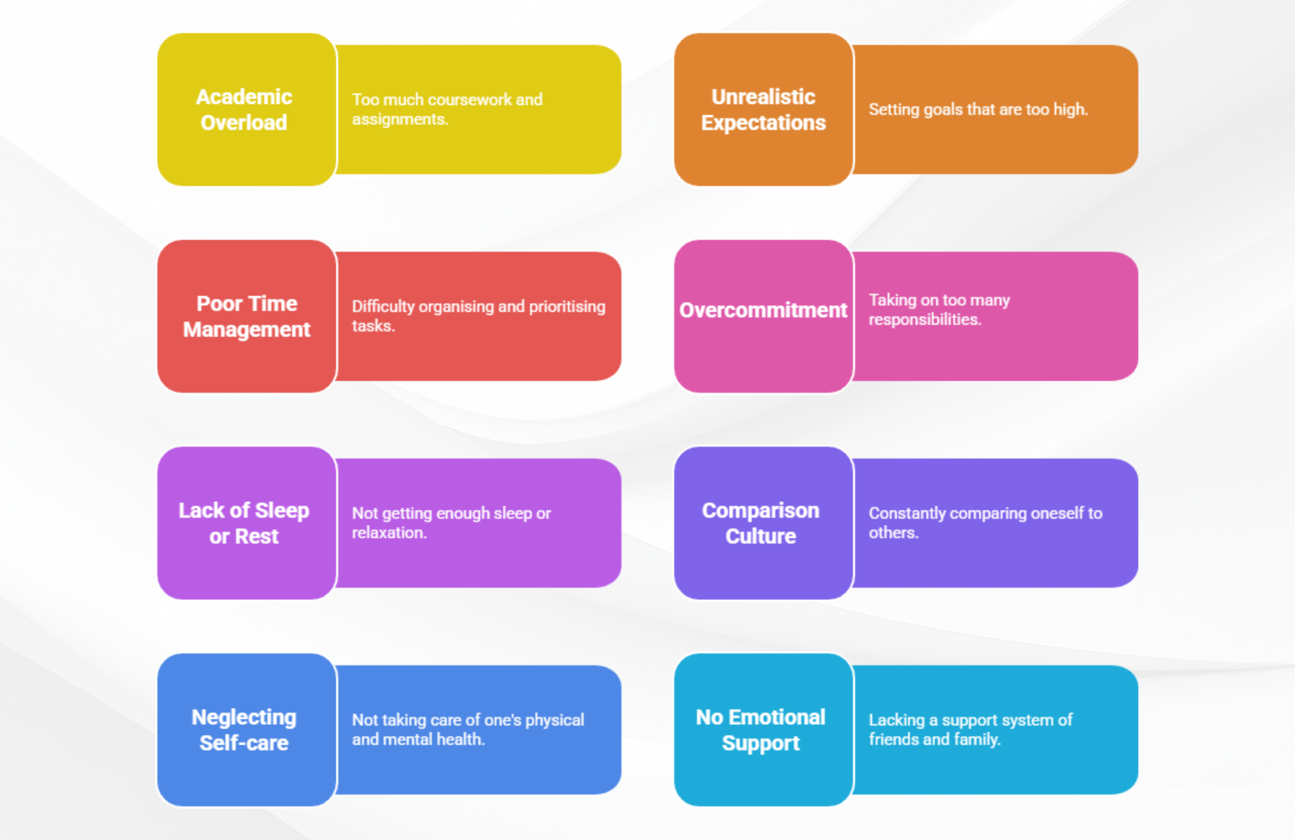 Avoid burnout by setting realistic goals, managing time effectively, and taking regular breaks. Prioritise sleep exercise, and hobbies. Learn to say no to excessive commitments and seek support when feeling overwhelmed or mentally exhausted.